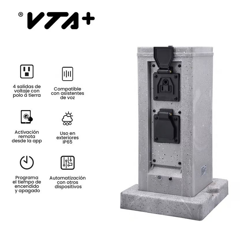 VTA-84764Tomacorriente Inteligente Tipo Roca VTA+ 2 Tomas Smart Home Wi-Fi para Exteriores