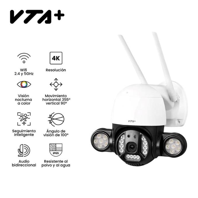 VTA-84864Cámara Inteligente Movimiento Exterior Twice 4 4K VTA+ 2 Reflectores