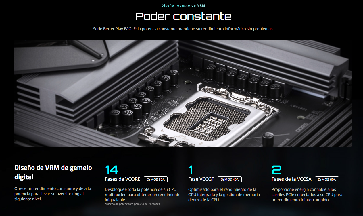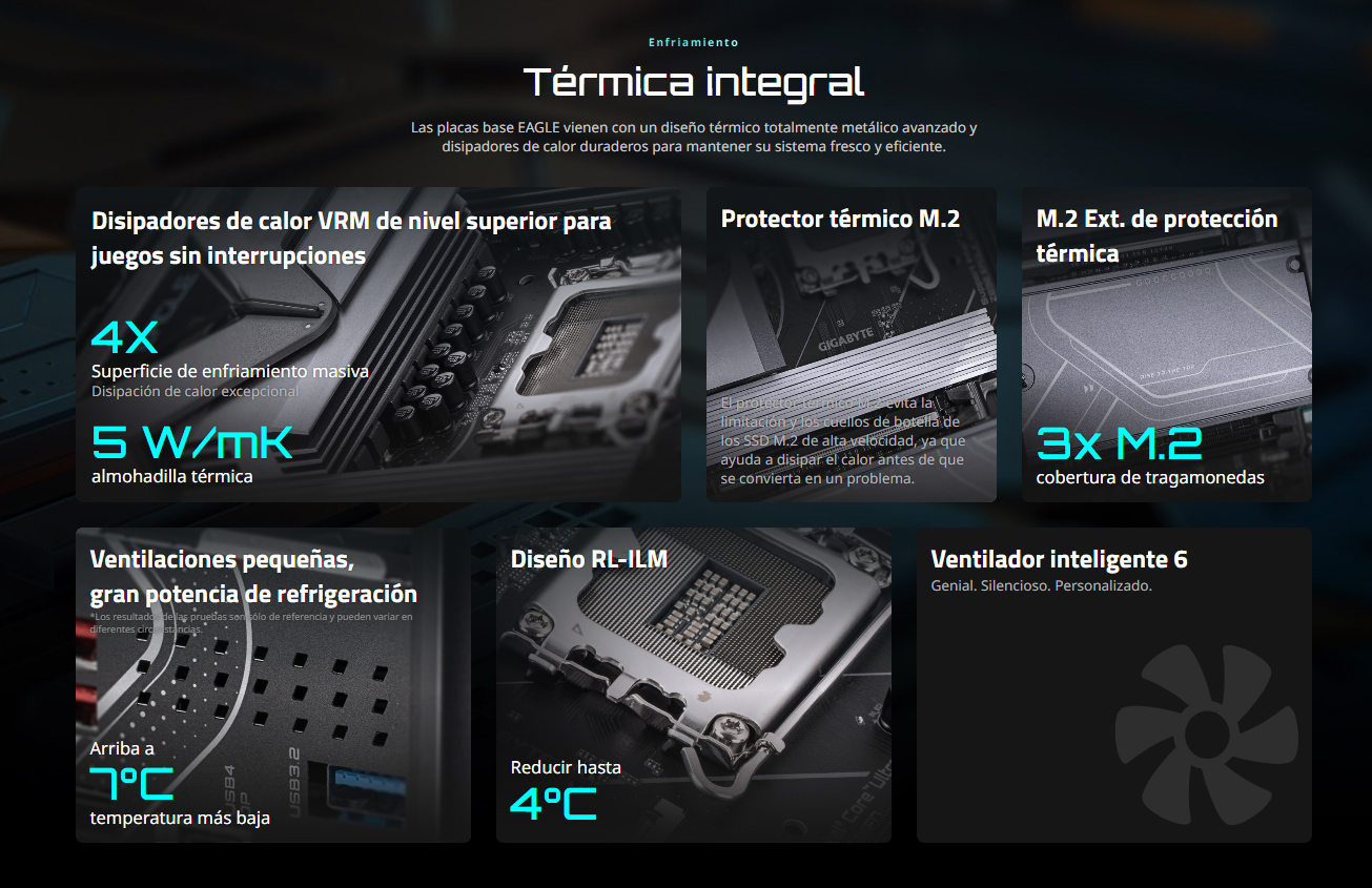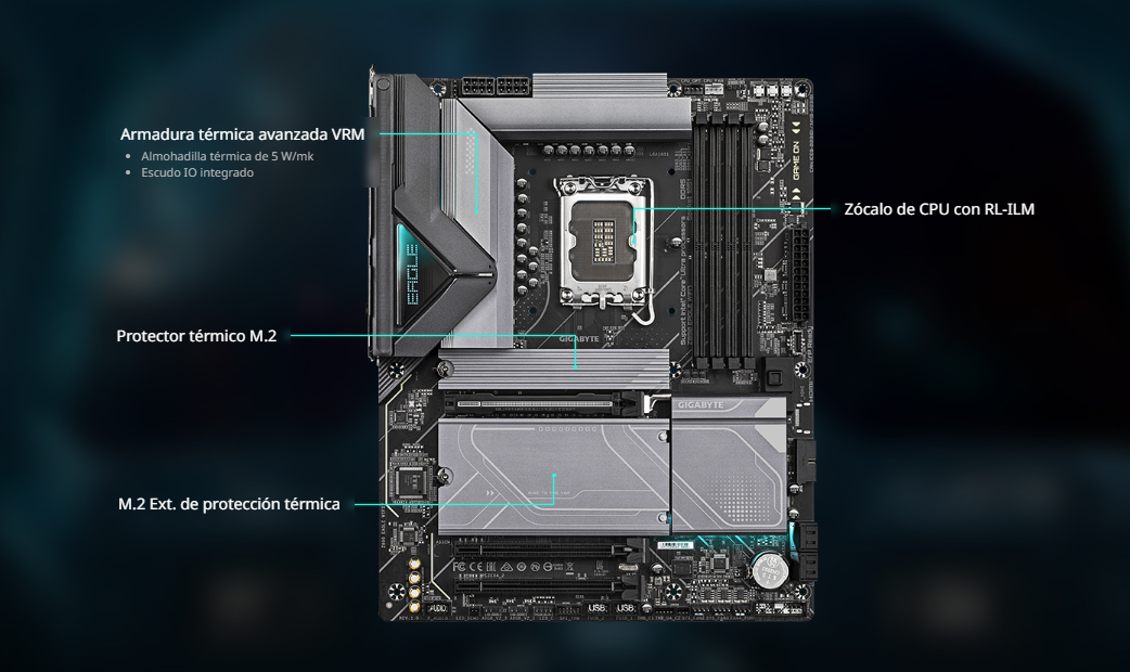 - Protección térmica eficiente : VRM Thermal Armor Advanced y M.2 Thermal Guard