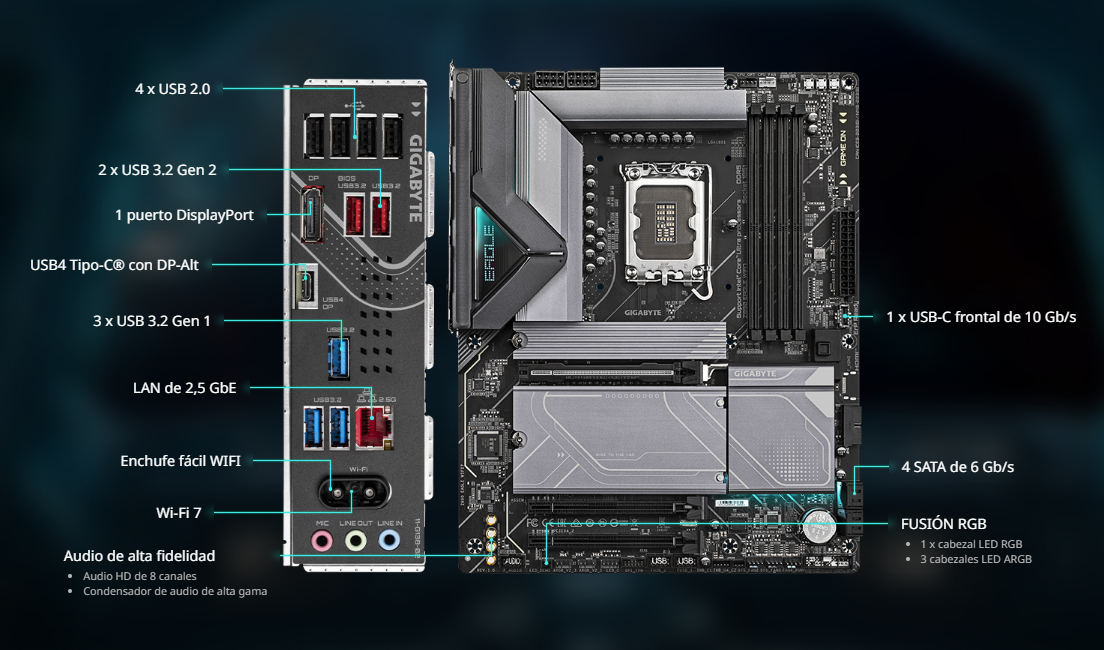 - Redes rápidas : LAN de 2,5 GbE y Wi-Fi 7